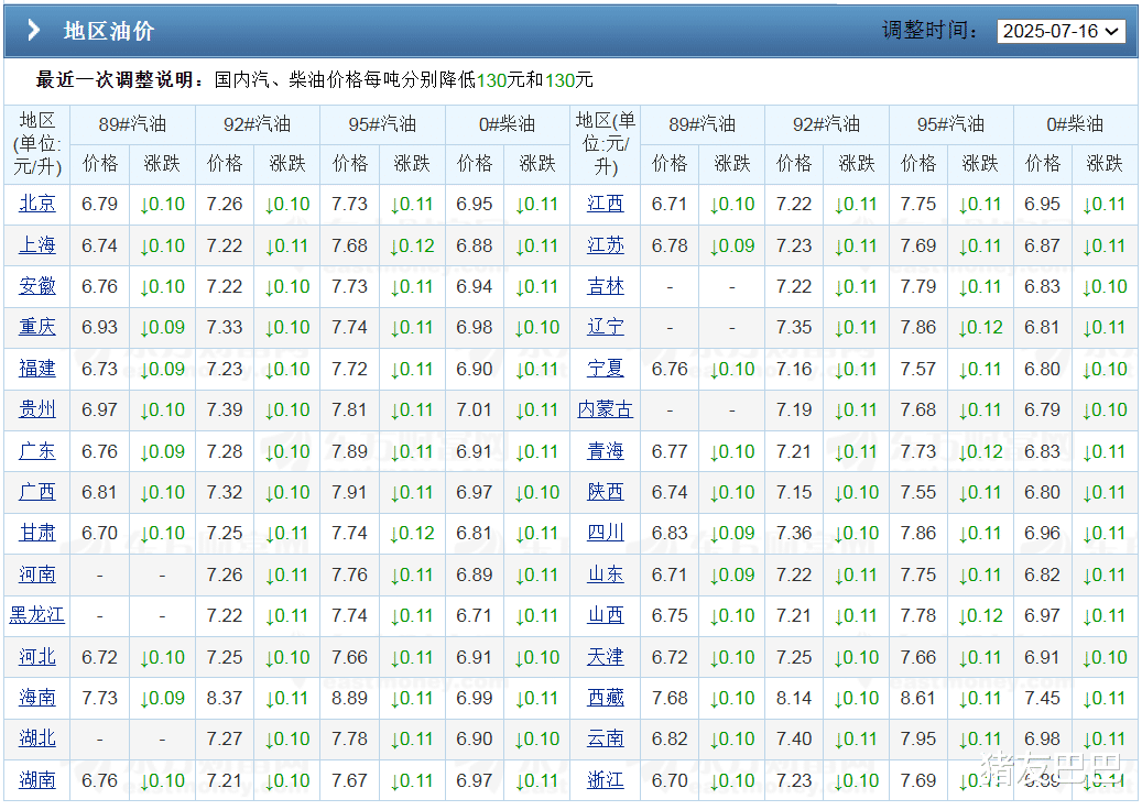 但是,上次油价恢复下降,7月15日24时,汽柴油下降130元以及125元/吨,此次油价下降,月内涨跌抵扣后,汽柴油涨幅减至105元以及100元/吨!今年前14次调价,汽柴油降幅增至225元以及215元/吨,年内油价降幅增加至0.17元/升左右!