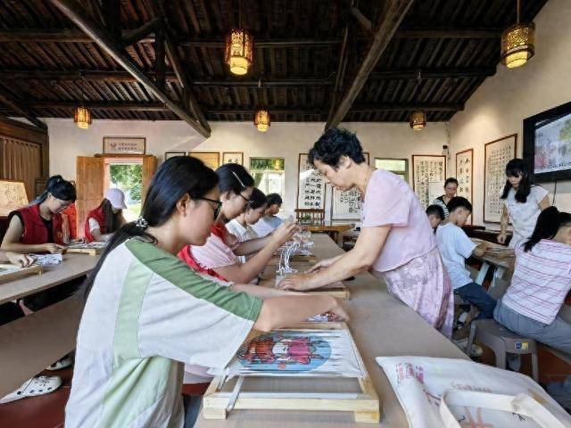 在桃城镇花石社区成德堂永芳纸织画展示馆,每日都有研学团队和爱好者参与创作。西南交通大学“三下乡”社会实践队队员们早早投入纸织画制作,在老师指导下穿梭于经纬之间。“看着简单,实则很考验手法,成品有若隐若现的朦胧美。”学生林靖雅赞叹道。首次接触纸织画的闫旭也表示,这是很新奇有趣的体验,期待完成作品。