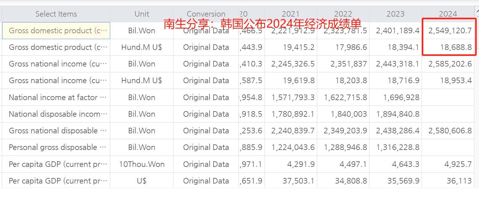 南生注意到,日本2024年的经济实际增长率为0.1%,增势仅为韩国的零头。按市场物价核算,日本经济规模约为609.2887万亿日元,换算成美元为40192.55亿,是韩国GDP的2倍多。